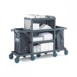 Tatil köyü, otel, hastane, yurt, rezidans gibi işletmelerin kat hizmetlerinde pratiklik ve standart sağlar.Kolayca hareket edebilen sessiz, tamponlu ve frenli tekerlekleri sayesinde çarpmalara karşı dayanıklıdır. Frenli tekerlekler ile eğik düzlemlerde sabitleme imkanı sunar. Esnek özellikleriyle hızlı ve pratik bir şekilde servis yapma imkanı sağlar. Modüler ve ergonomik yapısı ile kat hizmetlerinde büyük kolaylık sağlar. Opsiyonel aksesuarı ile çamaşır bölmenizi 2 x 60 lt olarak kullanma imkanı sunar. Komple gövde yapısının plastik olması, iç ve dış mekan kullanımlarına olanak sağlar, su ile yapılan temizliklerden hiç bir şekilde etkilenmez ve paslanma yapmaz, ürünün hammaddesinde kimyasal maddelere ve ısıya dayanıklı Poli Propilen malzeme kullanılmıştır. Modülün ön tarafının açık, diğer üç tarafının kapalı olması estetik açıdan farklılık arz etmektedir. Modülün, üç katlı ve dört raflı olması kullanıcılarına daha rahat iş yapma ve servis olanağı sunmaktadır. Ayrıca modül, kullanıcılarına 2 x 120 lt çamaşır toplama imkanı sunmaktadır. Her iki taraftaki itme sapları ve çöp torba kilitleri kullanım rahatlığı sağlar.