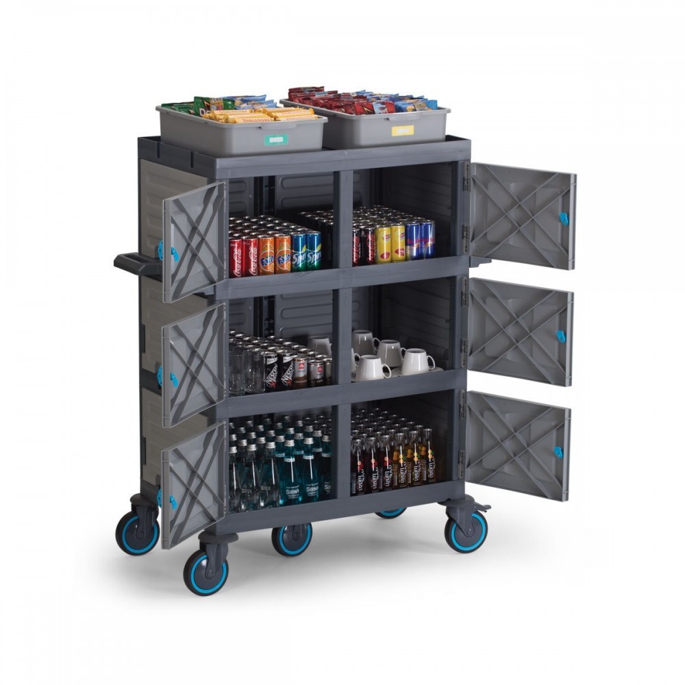 Kullanım alanları daha dar olan restaurant, otel, okul ve hastane gibi işletmelerin servis hizmetlerinde tercih edilir. Kolayca hareket edebilen sessiz, tamponlu ve frenli tekerlekleri sayesinde çarpmalara karşı dayanıklıdır. Frenli tekerlekler ile eğik düzlemlerde sabitleme imkanı sunar. Esnek özellikleriyle hızlı ve pratik bir şekilde servis yapma imkanı sağlar. Modüler ve ergonomik yapısı ile işlerinizi kolaylaştırır. Komple gövde yapısının plastik olması, iç ve dış mekan kullanımlarına olanak sağlar, su ile yapılan temizliklerden hiç bir şekilde etkilenmez ve paslanma yapmaz, ürünün hammaddesinde kimyasal maddelere ve ısıya dayanıklı Poli Propilen malzeme kullanılmıştır.